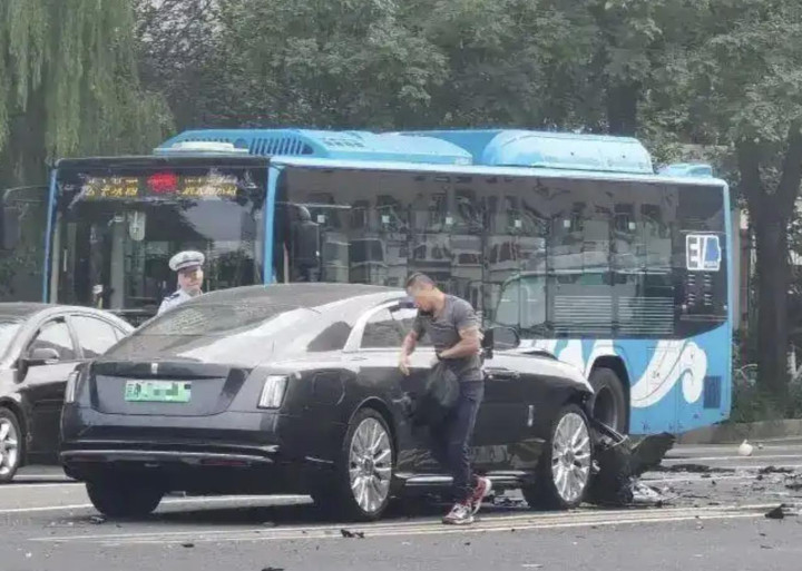 据极目新闻此前报道,网传照片显示,一辆劳斯莱斯闪灵轿车停在公路上,车身损毁严重,安全气囊弹出。车外人员疑似知名车评人陈震。记者对比该车的车牌号,与此前车评人陈震车辆晒出的劳斯莱斯闪灵为同一号牌。有网友称,该事故发生在北京万寿路。